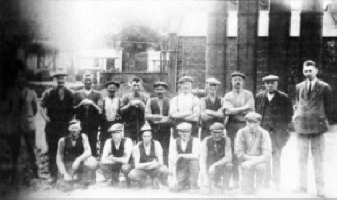 | om Scholes, left, and Sammy Hanna at the door of Schole's Butcher's Shop, in the 1950s. | Workers in Lisburn Gas Works in 1928 |