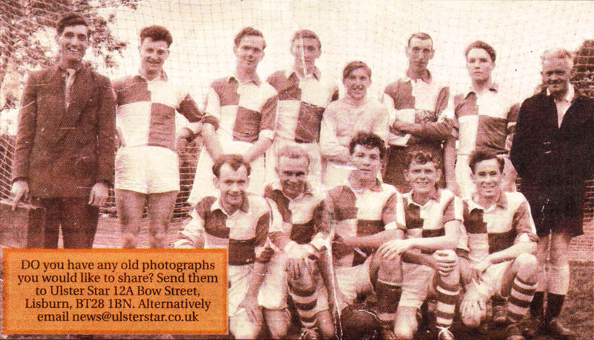 A man who originated from Lisburn has returned to his home city for a two month holiday and found this photograph believed to be taken in the 1950's of the Rig football team that played in the Lisburn Amateur League. Among the players he recognised include Bobby Patterson, Jim McClelland and Brian Spence as well as its manager Woolsley Ward. Can you help him with the other names? If so ring Robert Morrison on 90- 621013.