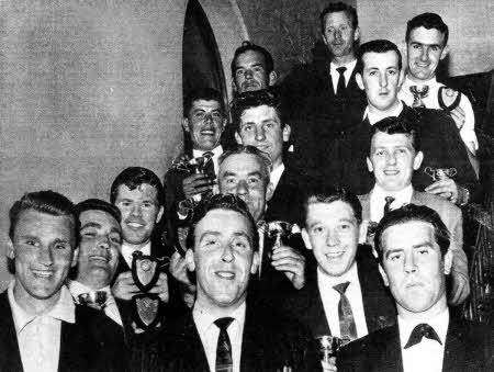 Members of Hayloft Dart Club, who were based in Bridge Street, celebrate a successful season in the Assembly Rooms in 1958. The club won the Sportsman's Cup and McKeown Cup. Maurice Leathem (front centre) was also awarded with the first Ulster Star trophy for Personality of the Year. The trophy was presented by Sam Kirkpatrick (back), the Star's darts correspondent.