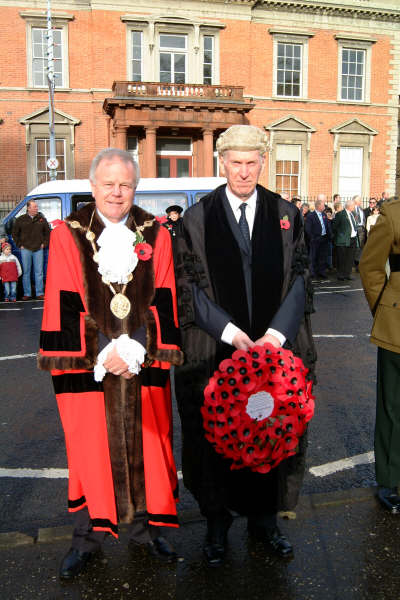 Preparing to lay wreathes at Lisburn Cenotaph. | The Mayor, Councillor Trevor Lunn lays a wreath at Lisburn Cenotaph. |